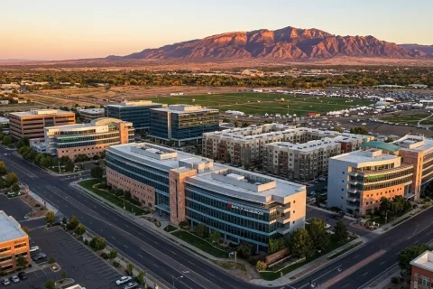 Journal Center is Albuquerque's modern professional corridor along Jefferson St NE, offering newer apartments and condos near I-25 and Balloon…